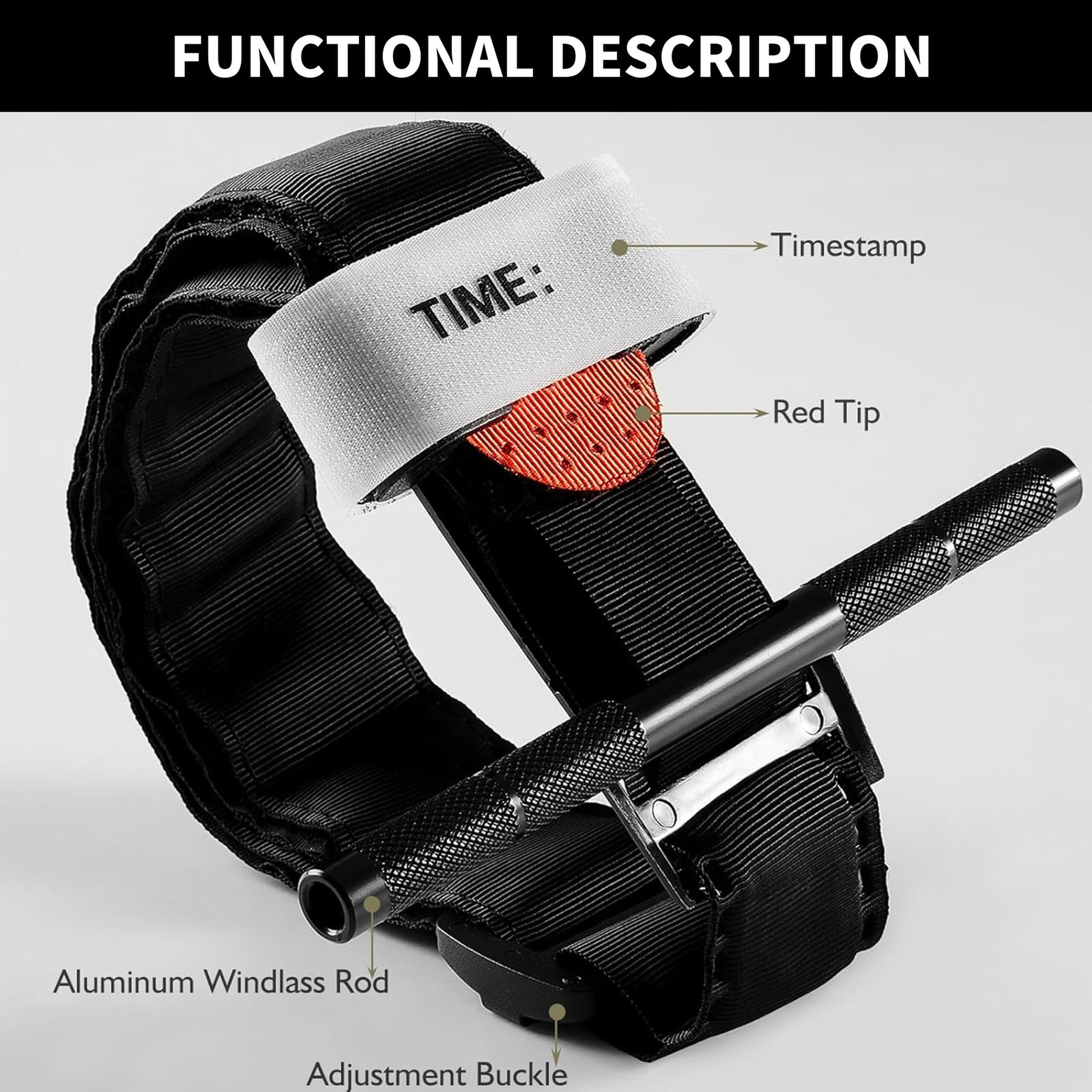 8.The use of accessories to complete the locking fixed function, you can achieve effective hemostasis in any case (mud, sand, ice and snow, blood clotting, etc. will cause the performance of the adhesive buckle to reduce, or even fail to complete the effective hemostasis.